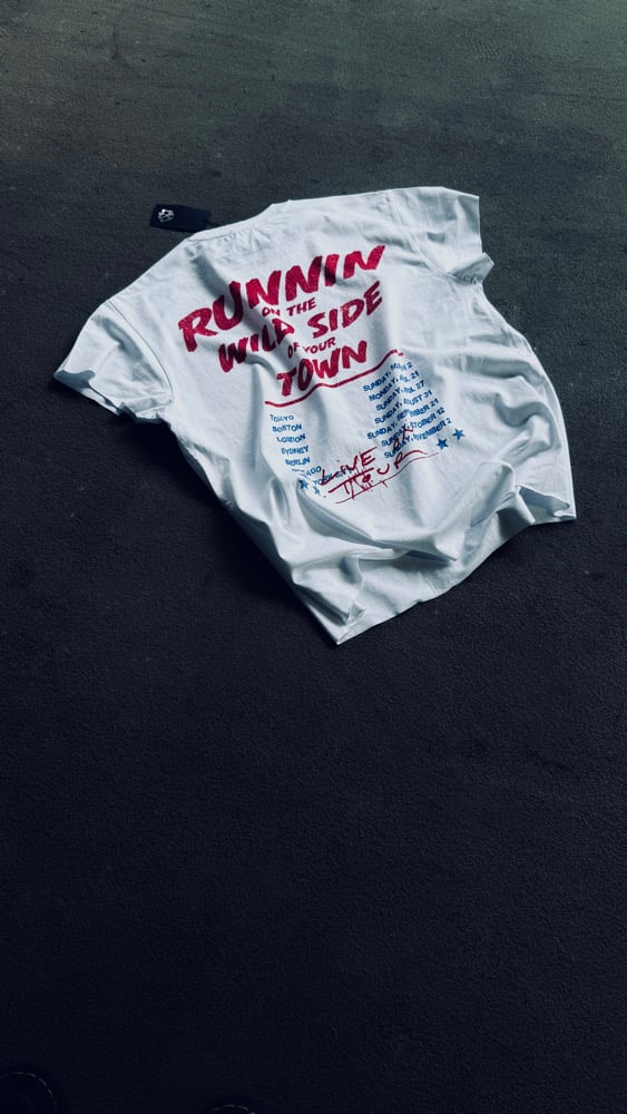Aged Black + Aged White with XL Print Front + Marathon Major Tour on Back